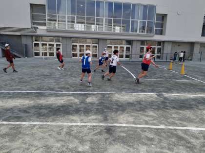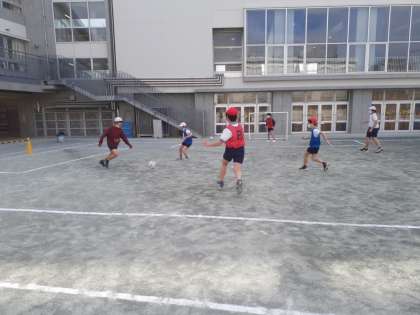 体育の時間です。今日は天気もよく、暖かくて運動するのも気持ちよさそうです。