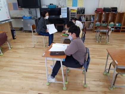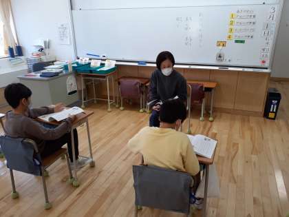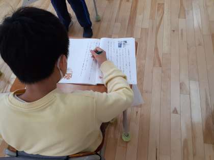 国語の時間です。読み方や意味の難しい言葉を確認して音読の練習をしました。
