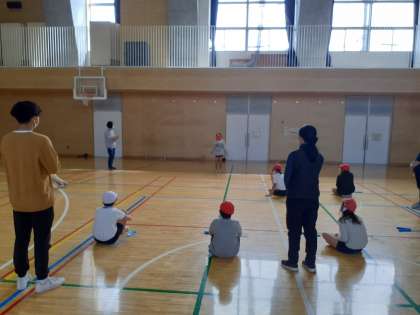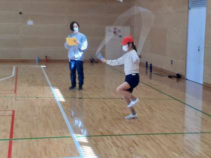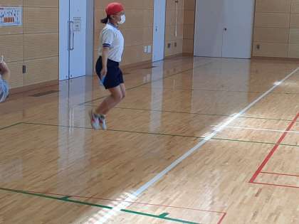 体育の時間です。自分が練習してきた縄跳びの技を発表しました。