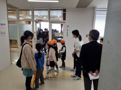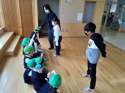 生活科の時間です。育成幼稚園の子供たちと交流をしました。優しく案内したり、質問したりお兄さんお姉さんらしい姿を見せていました。
