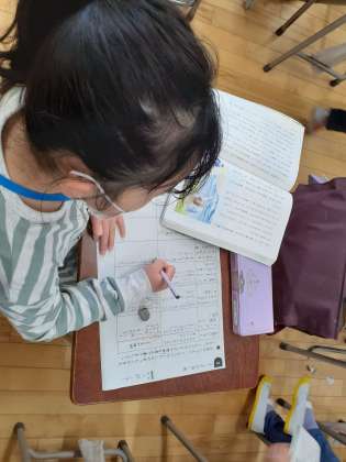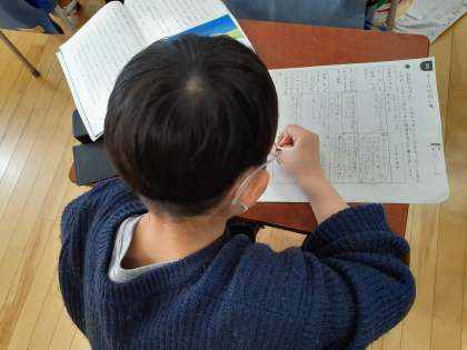 国語の時間です。スーホの気持ちを場面ごとに教科書をよく読んで考えました。