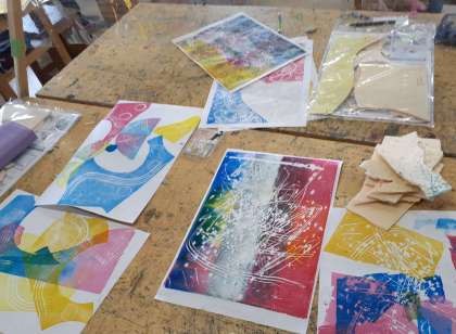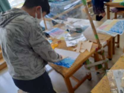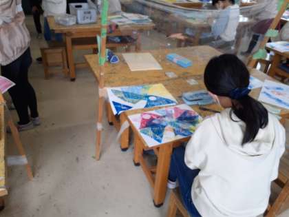 図工の時間です。版画のデザインや色の使い方がすてきでした。さすが6年生です。