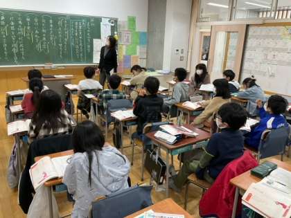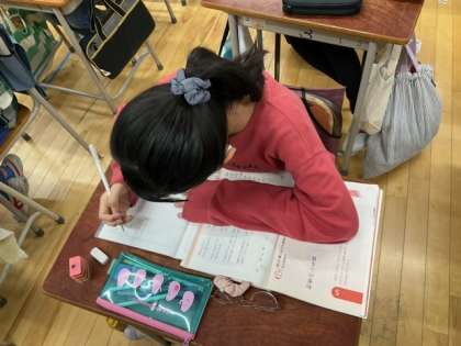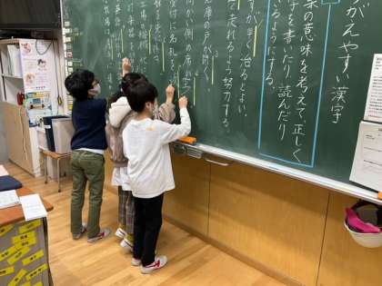 国語の時間です。「まちがえやすい漢字」言葉の意味を考えて、正しく漢字を書いたり読んだりしています。
