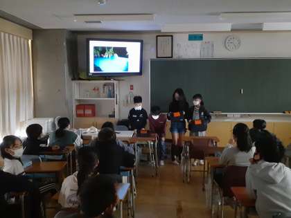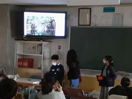 社会の時間です。自分たちが選んだ都道府県について、魅力が伝わるようにプレゼンしました。
