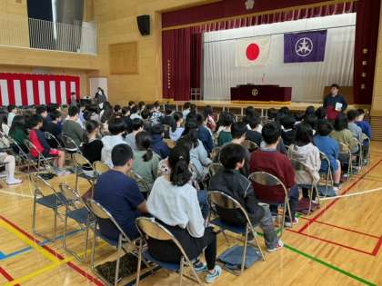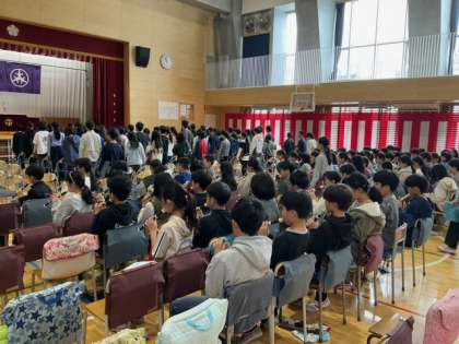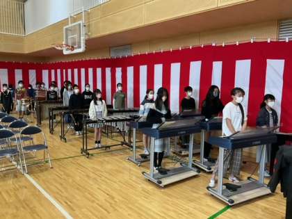 5年生の素晴らしい演奏とともに、6年生が入場します。卒業式まであと1週間になりました。一日一日を大切に過ごしてください。