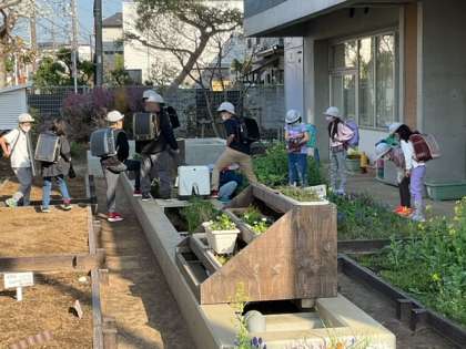 登校した後のビオトープも楽しみの一つですね。おやじの会の方が、お世話をしてくださっています。