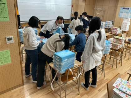 明日の入学式に向けた準備が始まりました。ここでも6年生が大活躍しています。
