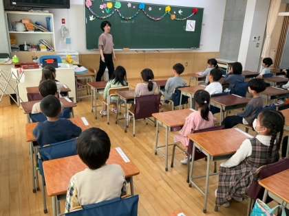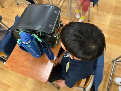 帰りの支度の練習をしています。初めての小学校生活は、どうでしたか?