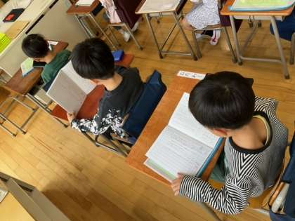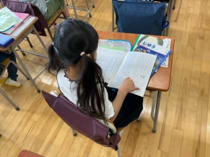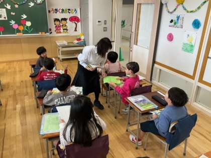連絡帳を開いて、先生が確認をしています。来週は、どんな1週間になるのかな?