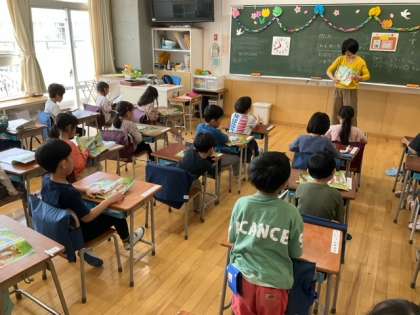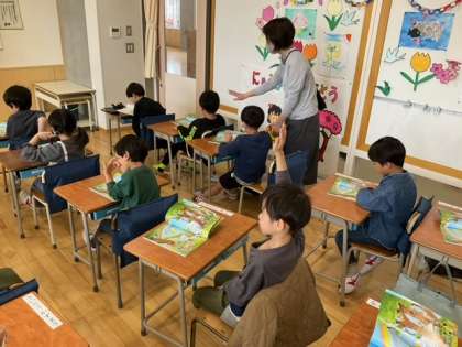 国語の時間です。この絵の中には、どんな生き物がいますか?