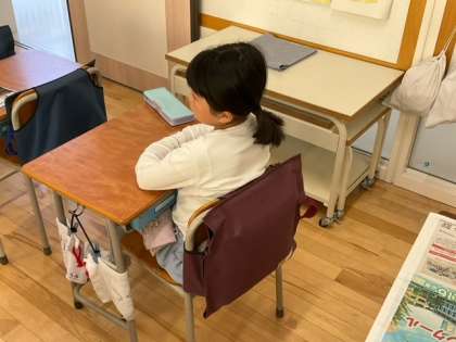 図工の時間です。「すきなこと なあに?」新しいクラスになりました。友達のことをよく知りたいですね。