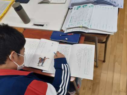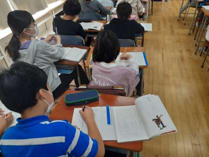 国語の時間です。「帰り道」の単元が始まりました。二人の視点から書かれている物語です。ぜひ、保護者の皆様も読んでみてください。