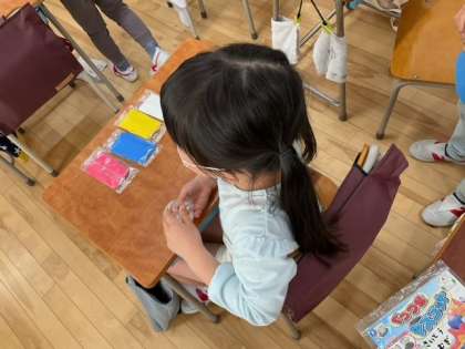 図工の時間です。「くっつきマスコット」磁石を使って、どんなマスコットを作るのかな?