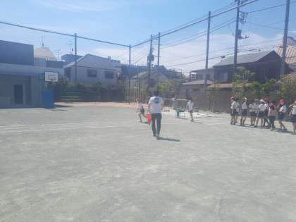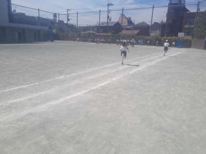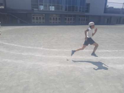 体育の時間です。90メートル走の記録を測りました。速く走るコツってあるの?と聞くといろいろな方法を教えてくれました。考えて取り組んでいます。