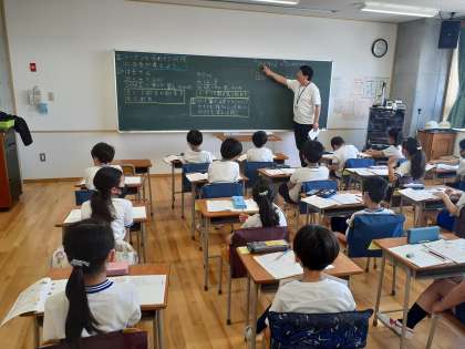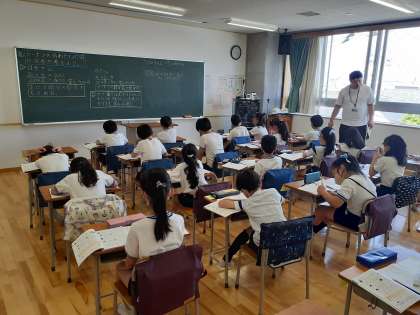 算数の時間です。3つの数のかけ算の仕方を考えました。