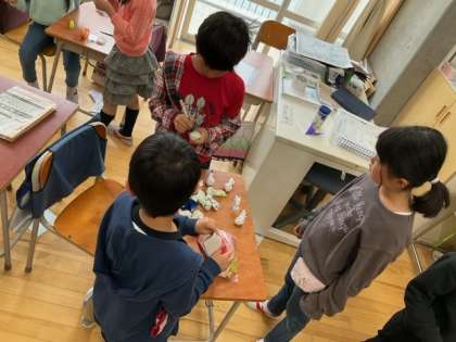 学級活動の時間です。転校する友達のために、お別れ会を開きます。思い出に残る時間にしようと、一生懸命に準備しています。