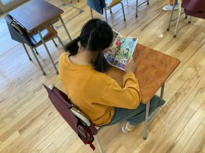 朝の支度をすませて、朝の読書をしています。落ち着いた1日のスタートですね。