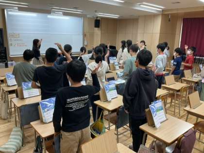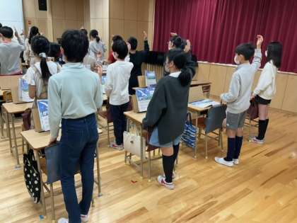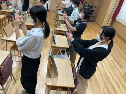 音楽の時間です。「翼をください」を手話もまじえて歌っています。2番までしっかり手話を覚えていて感心しました。