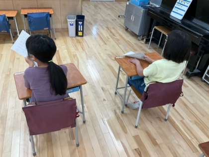 日常の時間です。ゴールデンウィークが終わり、久しぶりの学校です。休みの日の出来事について、発表の準備をしています。