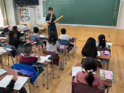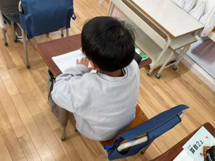 算数の時間です。この時間では、筆算の仕方をしっかり学習します。