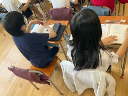 社会科の時間です。内閣と裁判所のはたらきについて学習しています。日頃から関心をもってくれるとうれしいです。