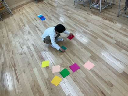 図工の時間です。この色は、あたたかい感じかな、それとも冷たい感じかな?