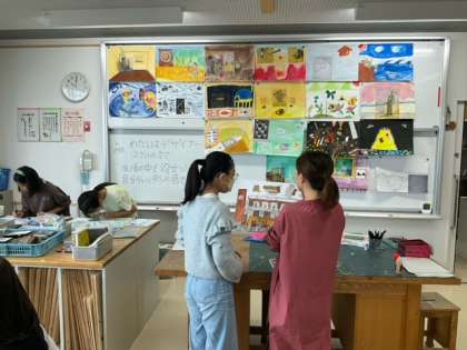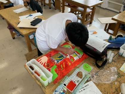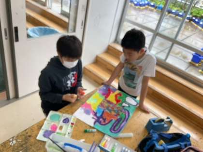 図工の時間です。「絵の一部から 想像を広げて」本当にすてきな作品ですね。