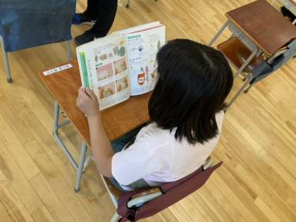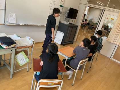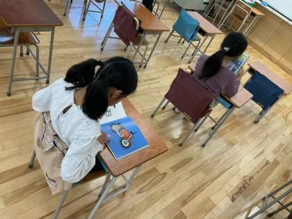 中学年と高学年のみなさんの朝の様子です。1、2年生は、運動会練習に行っています。
