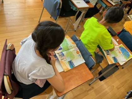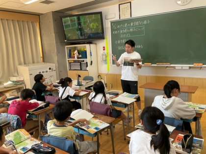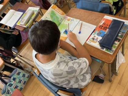 社会科の時間です。「わたしたちの東京都の様子」東京都には、自然豊かな島々がありますね。すてきなところですよ。