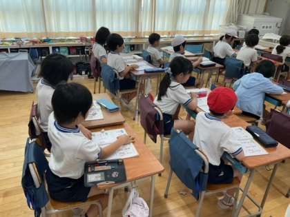 外国語活動の時間です。How are you? 気持ちをあらわす言葉を探しています。