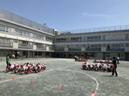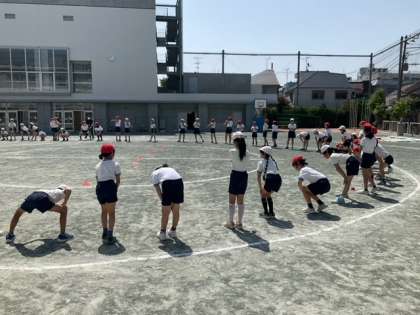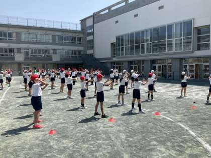体育の時間です。校庭は暑いですが、4年生のダンスはもっと熱いです。乞うご期待!