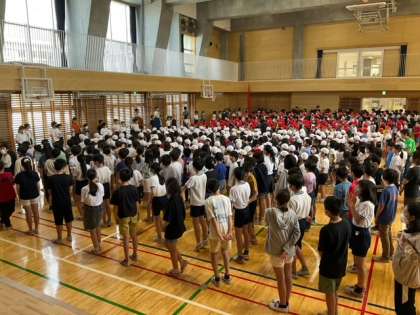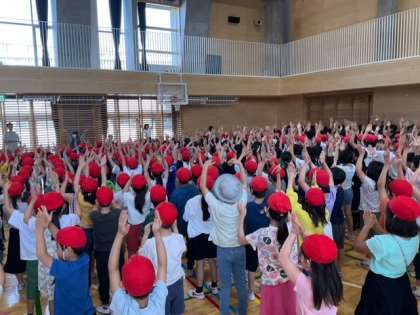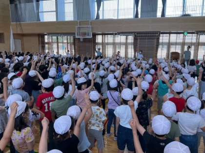 今朝の音楽集会は、運動会に向けて「ゴーゴーゴー」の練習を行いました。応援団のリードで、熱気あふれる練習になりました。