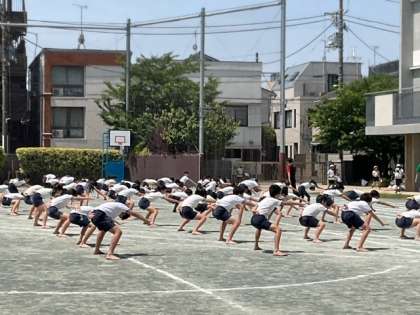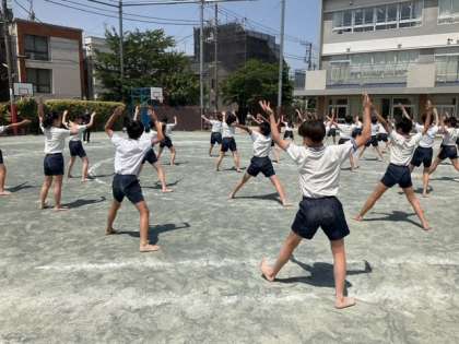 体育の時間です。「ソーラン節」の練習風景です。日に日に良くなっていますね!