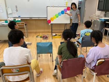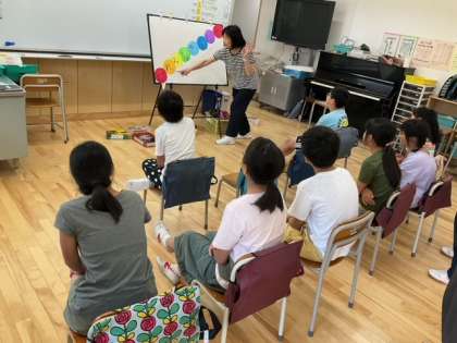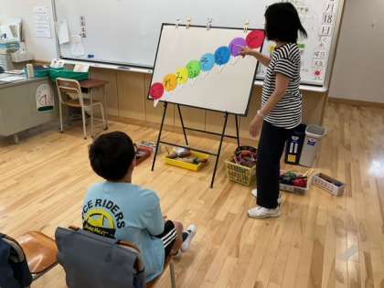 音楽の時間です。「ドレミファ風船の歌」を歌っています。みなさん、音感がいいですね。