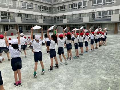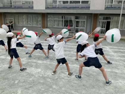 体育の時間です。3年生は、花笠音頭に挑戦しています。令和の花笠音頭は、ひと味違います。お楽しみに!