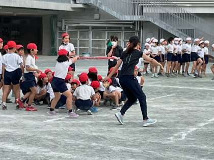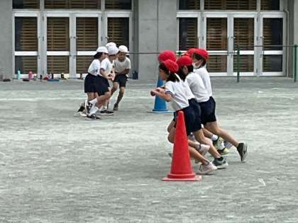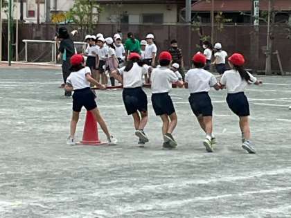 体育の時間です。4年ぶりに復活する団体競技。4年生は、台風の目「旋風を巻き起こせ!」です。