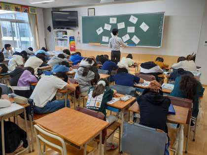 外国語の時間です。missing gameで盛り上がりました。よく覚えられるなぁと感心します。