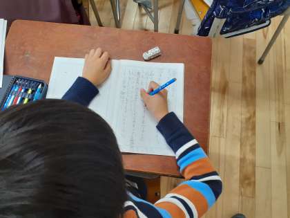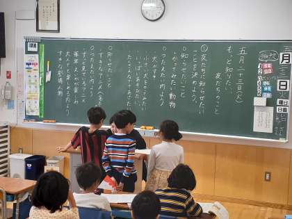 国語の時間です。もっと知りたい、友だちのことを学習しています。話す内容や聞く内容を考えました。お互いのことがよく分かってさらに仲が深まりそうな学習です。