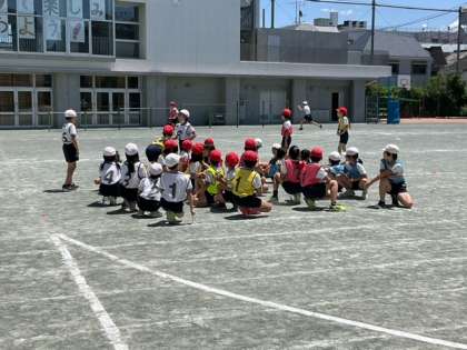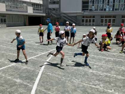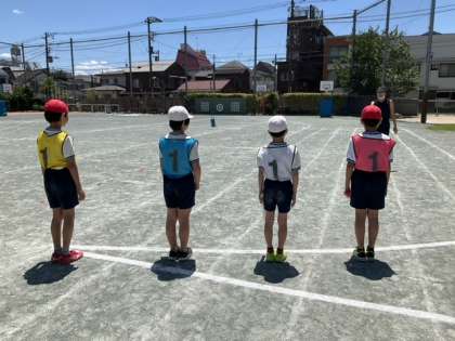 3、4年生代表選手による「中学年リレー」の練習風景です。運動会午前の部の最後を飾るプログラムになります。