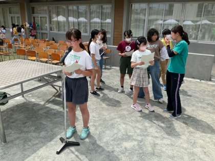 司会の確認が進んでいます。代表の児童が進行を担当します。
