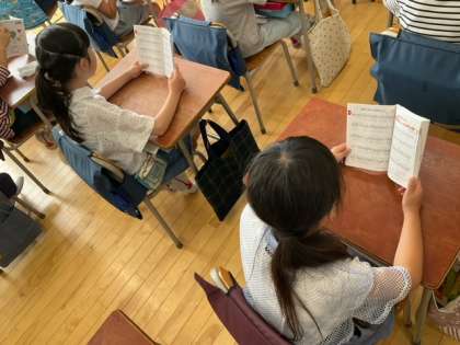 音楽の時間です。運動会では、大活躍だった2年生です。元気に歌を歌って、1週間がスタートしました。