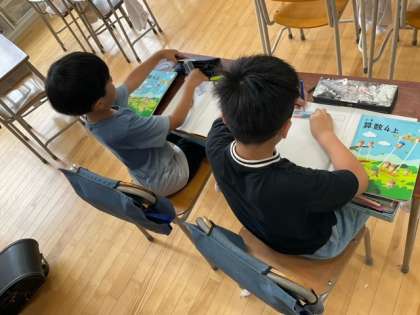 算数の時間です。「角」の学習です。分度器をしっかり使えるようにしてくださいね。