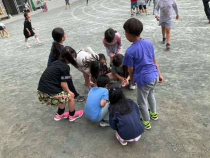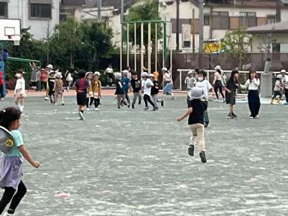 昼休みは、前半と後半に分かれます。前半は低学年の時間で、元気にあそんでいます。