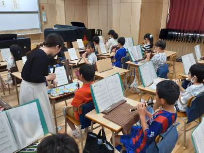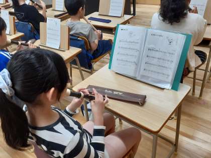 音楽の時間です。リコーダーを一生懸命練習しています。あちらこちらから「できた」という嬉しそうな声が聞こえました。