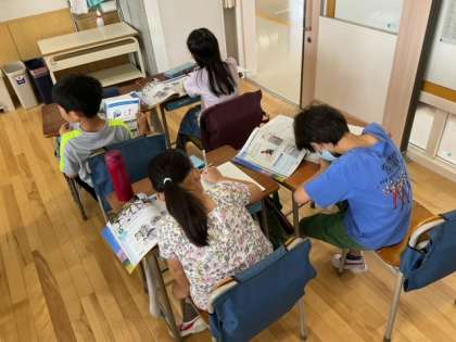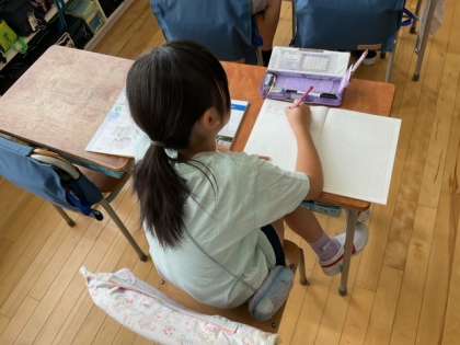 理科の時間です。「かげと太陽」かげと太陽の関係などについて、観察を通して分かったことをまとめています。