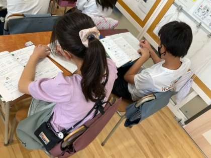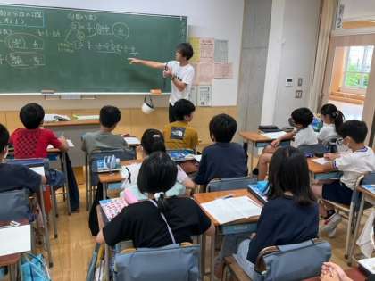算数の時間です。「小数×分数」の計算の仕方を考えています。既習事項を上手く応用しましょう。