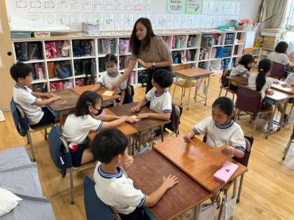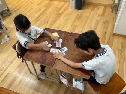 外国語活動の時間です。日曜日から土曜日までのカードが配られました。一度シャッフルして、日曜日から順番に並べ替えます。