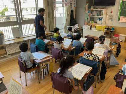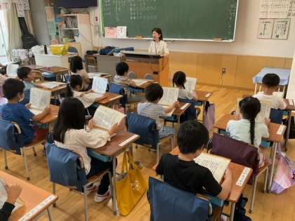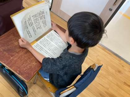 音楽の時間です。「にじ」を歌っています。すてきな歌声が聞こえてきます。元気をもらえます。
