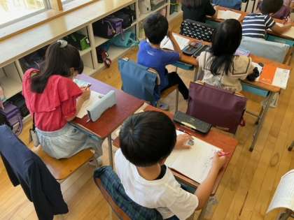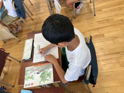 国語の時間です。「言葉で遊ぼう」説明文の学習に入っています。段落とそのポイントを押さえて読みましょう。