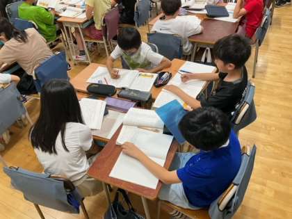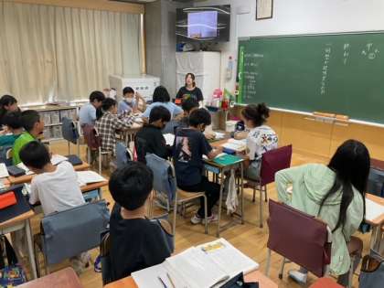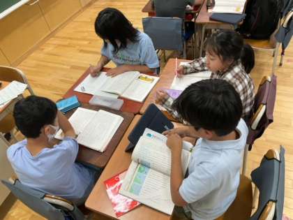 国語の時間です。「言葉の意味が分かること」グループで話し合いながら、意味段落に分けています。